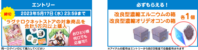 ・「改良型濃縮エルニウムの箱」(1個) ・「改良型濃縮オリデオコンの箱」(1個) |