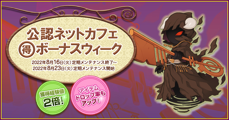 獲得経験値&アイテムドロップ率アップ!「公認ネットカフェまる得ボーナスウィーク」開催!