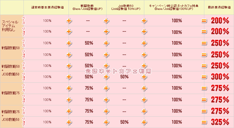 スペシャルアイテム「戦闘教範」「Job教範」も併用すると、獲得経験値はさらにアップ!