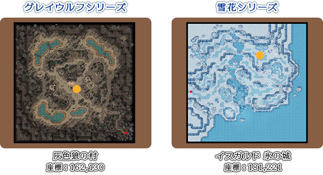 ※獲得条件を満たしている場合、会場内(211,329)にいる「ミミミ」に話しかけると、それぞれのマップに転送してもらえます。