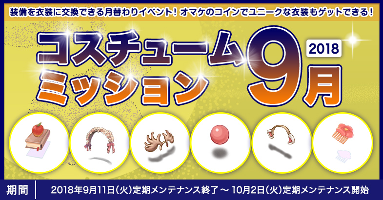「コスチュームミッション2018 9月」月替わりで装備の衣装化にチャレンジ!