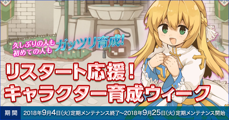 ラグナロクオンラインでは、9月4日(火)から3週間「リスタート応援!キャラクター育成ウィーク」を開催いたします。